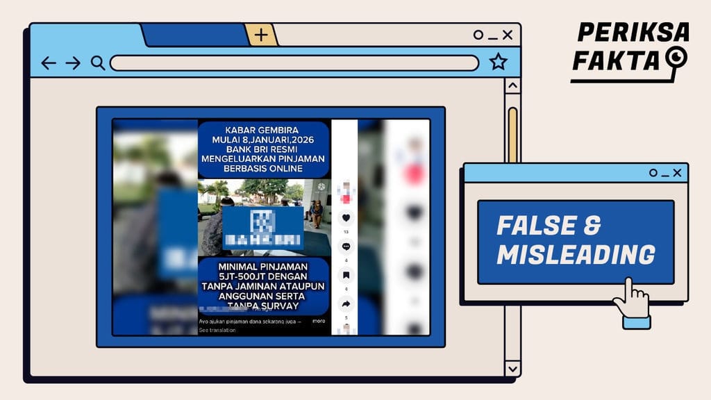 Berdasarkan hasil penelusuran fakta, klaim yang menyebut Bank Rakyat Indonesia (BRI) resmi mengeluarkan pinjaman online sebesar Rp5 juta hingga Rp500 juta tanpa jaminan, agunan, dan survei adalah salah dan menyesatkan (false and misleading).
