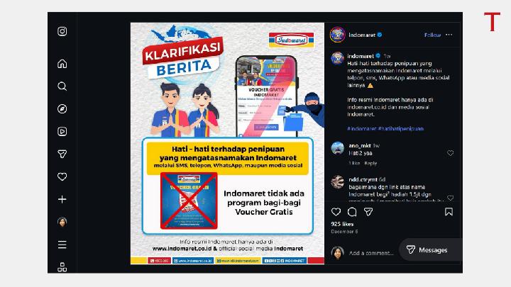 tirto.id - Penipuan undian berhadiah yang mengatasnamakan instansi resmi masih marak beredar di media sosial. Platform digital kerap dimanfaatkan pelaku untuk menyebarkan klaim palsu, terutama dengan mencatut nama perbankan tertentu guna meyakinkan calon korban.