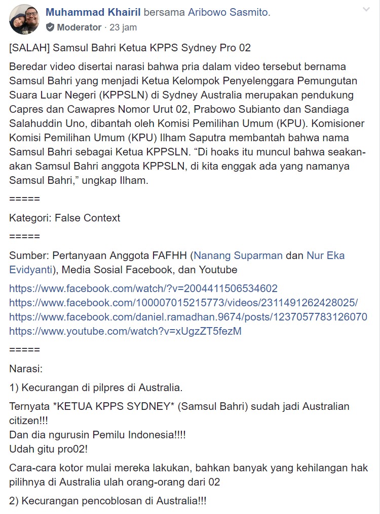 - https://turnbackhoax.id/2019/04/15/salah-samsul-bahri-ketua-kpps-sydney-pro-02/