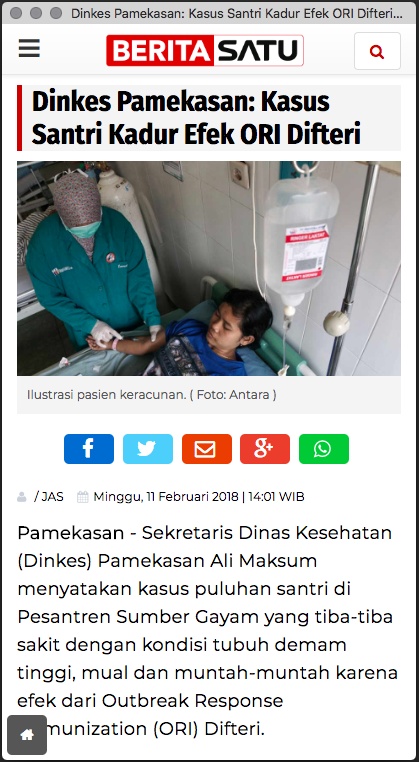 - http://www.tribunnews.com/regional/2018/02/11/90-an-santriwati-bergelimpangan-usai-suntik-vaksin-difteri?page=all