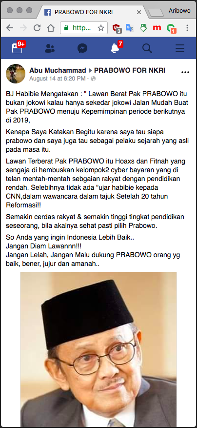 (GFD-2018-348) [HOAKS] "BJ Habibie Mengatakan: "Lawan Berat Pak PRABOWO itu bukan Jokowi"
