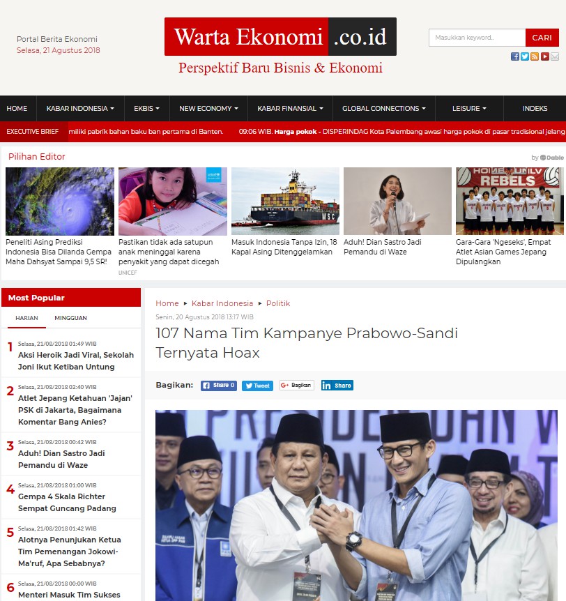 (GFD-2018-363) [KLARIFIKASI] Belum Ada Susunan Resmi Tim Kampanye/Pemenangan Pasangan Prabowo-Sandi Hingga Kini (21 Agustus 2018)