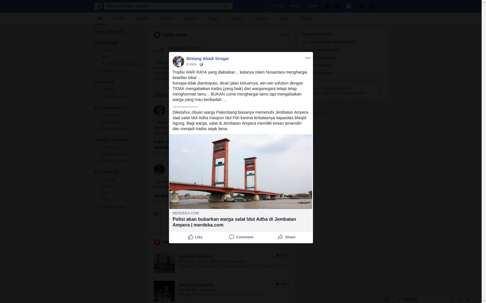 (GFD-2018-365) [KLARIFIKASI] Informasi Pihak Kepolisian Akan Bubarkan Warga yang Salat Idul Adha di Jembatan Ampera