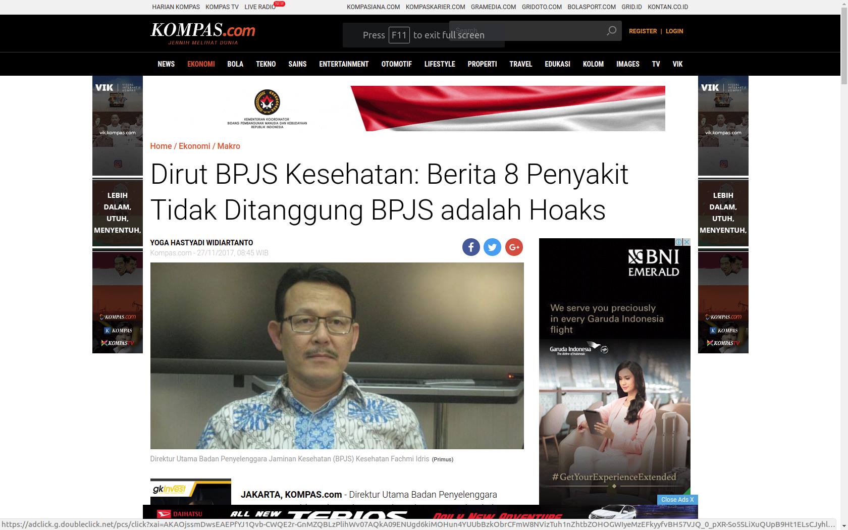 “Berita yang berkembang bahwa 8 penyakit tersebut tidak ditanggung BPJS adalah hoaks. Sampai sekarang BPJS masih menangungnya 100 persen,” ujar Fachmi saat dalam pesan singkatnya pada Kompas.com, Minggu (26/11/2017).