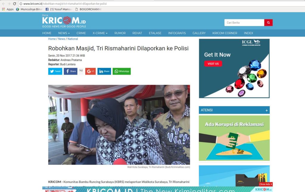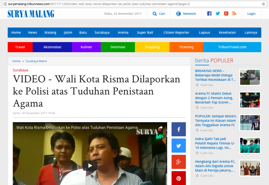 [DISINFORMASI] “Dituduh Menistakan Agama, Walikota Risma dilaporkan ke Polisi”