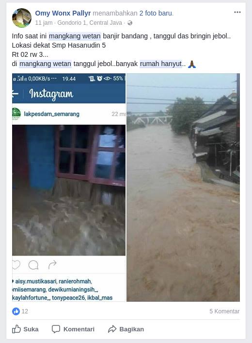 Hal ini meluruskan berita hoax dari pesan berantai (broadcast) banjir bandang di Mangkang Wetan mengakibatkan ratusan rumah hanyut.