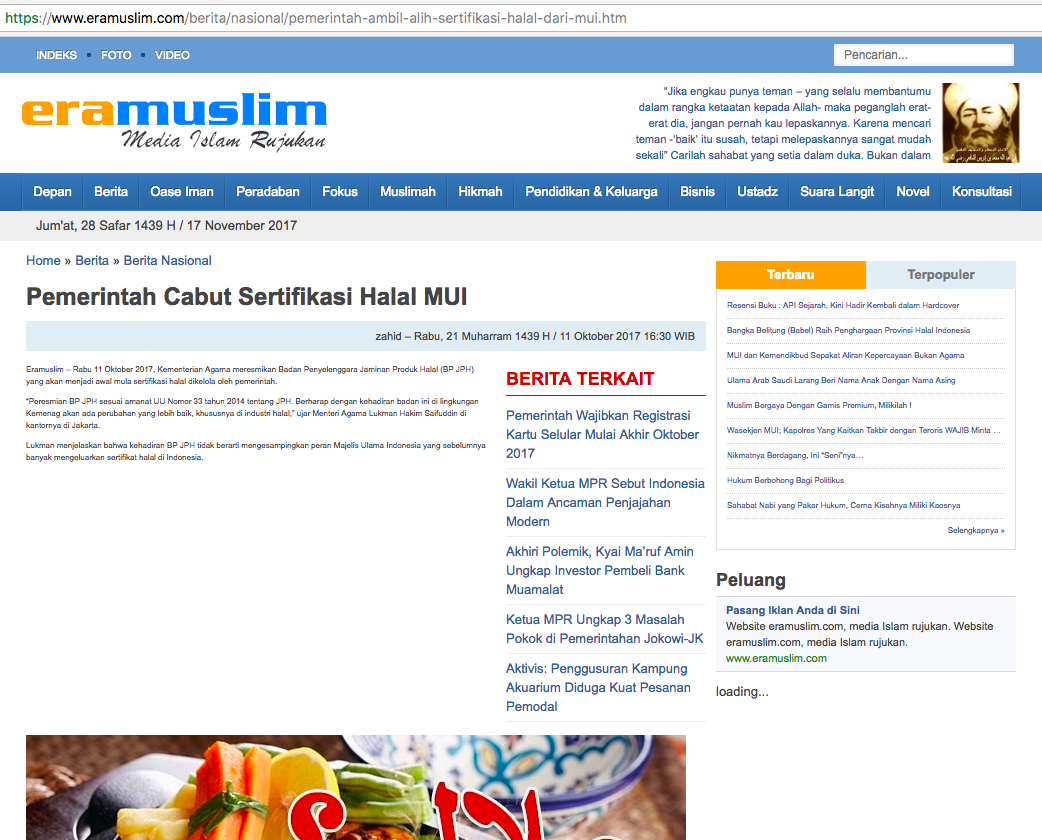 “(1) Perpindahan kewenangan sertifikasi halal ini sudah digariskan oleh UU Jaminan Produk Halal (UU JPH) yang disahkan tahun 2014, era SBY. Hanya saja untuk penerapannya memang butuh persiapan dan waktu.