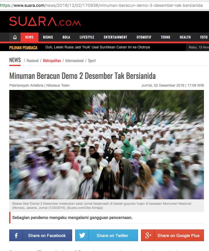[KLARIFIKASI] “Minuman Beracun Demo 2 Desember Tak Bersianida”