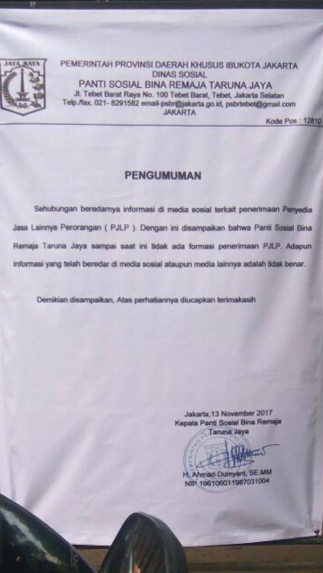 [HOAX] LOWONGAN MAGANG DI PANTI SOSIAL BINA REMAJA TARUNA JAYA