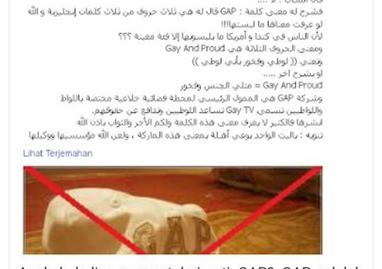 Ketiga, GAP memang termasuk salah satu perusahaan yang mendukung Gay Rights di Amerika, tetapi kabar soal singkatannya ini adalah hoax yang sudah mendunia (dan sekarang masuk Indonesia).