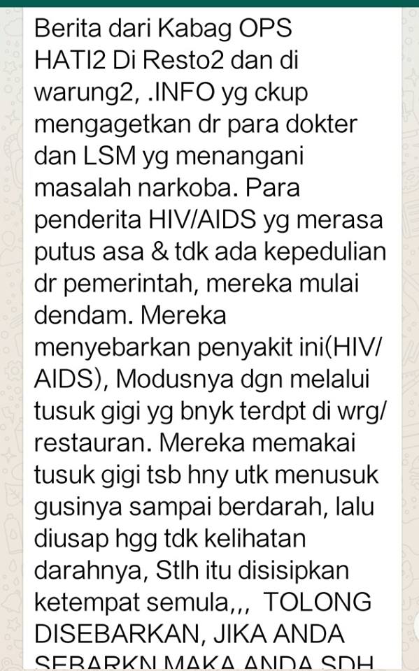 [DISINFORMASI] Tusuk Gigi Sebarkan HIV AIDS