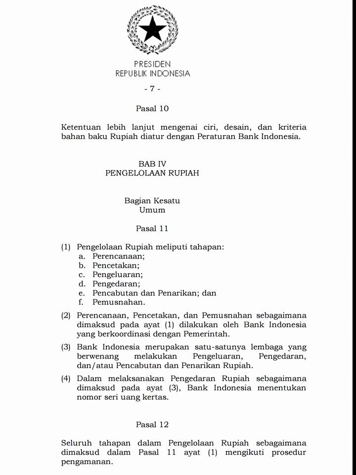 Perubahan pada rupiah kertas baru tahun emisi 2014 ke atas merupakan amanat dari UU No 7 Tahun 2011 tentang Mata Uang yang disahkan Presiden SBY tertanggal 28 Juni 2011.
