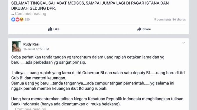 Coba perhatikan tanda tangan yg tercantum dalam uang rupiah cetakan lama dan yg baru……ada perbedaan yg sangat prinsip.
