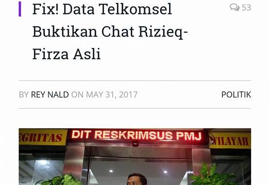 Portal daring seword.com dalam sebuah artikel berjudul “Fix! Data Telkomsel Buktikan Chat Rizieq-Firza Asli” menggiring opini dan meyakinkan publik bahwa Telkomsel memiliki bukti data Bahwa percakapan whatsapp Habib Rizieq dan Firza Husein asli.