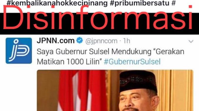 [HOAX] Gubernur Sulsel Mendukung Gerakan Matikan 1000 Lilin