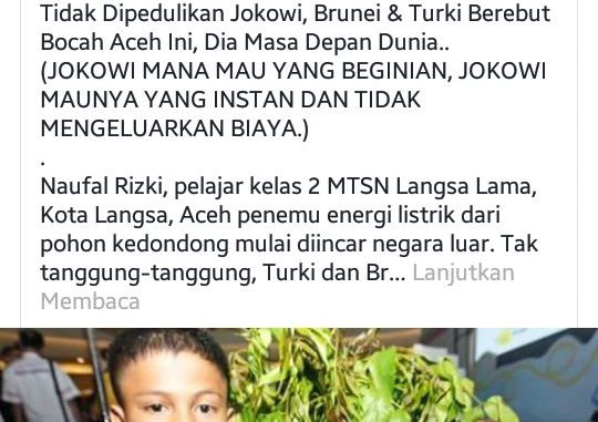 [DISINFORMASI] Penemu Listrik Naufal Rizky Tidak Dipedulikan Jokowi