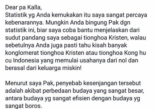 Statistik yg Anda kemukakan itu saya sangat percaya kebenarannya. Mungkin Anda bingung Pak dgn statistik ini, biar saya coba bantu menjelaskan dari sudut pandang saya sebagai tionghoa Kristen, walau sebetulnya Anda juga pasti tahu kisah banyak konglomerat tionghoa Kristen atau tionghoa Kong hu cu Indonesia yang memulai usahanya dari nol dan berasal dari keluarga miskin!