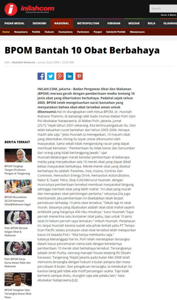 BPOM sudah membantah berita hoax tersebut sebagaimana dimuat dalam situs inilah.com.
