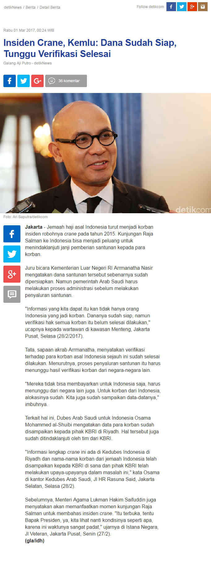 Bahkan pada artikel Detik.com yang dijadikan rujukan oleh si pembuat berita fitnah ini dengan cukup jelas menyatakan bahwa dana santunan tersebut sudah dipersiapkan (oleh pemerintah Arab Saudi) namun pemerintah Arab Saudi harus melakukan proses administrasi (berupa verifikasi data nama-nama korban) sebelum melakukan penyaluran santunan tersebut kepada pemerintah negara-negara asal para korban, termasuk Indonesia.