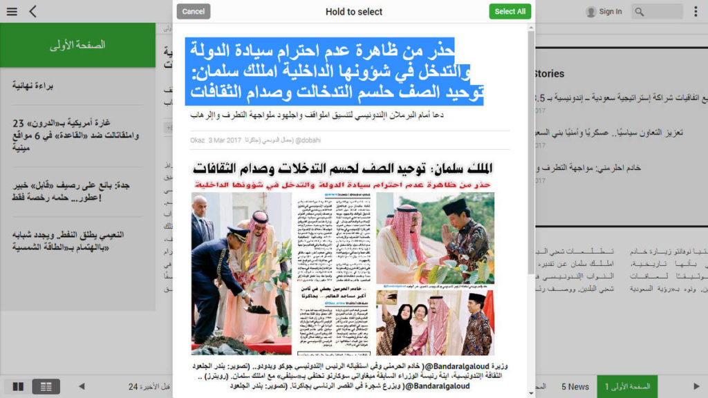 Terjemahan Koran Berbahasa Arab Bahwa Indonesia Kurang Bertata Krama Terhadap Raja Salman