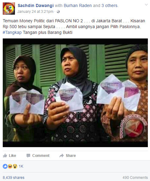 Foto berasal dari situs lain yang kemudian diberi narasi untuk menyudutkan salah satu pasangan calon pada Pilkada DKI 2017. Foto asli berasal dari laman artikel situs antaranews.com tertanggal 13 Agustus 2013: