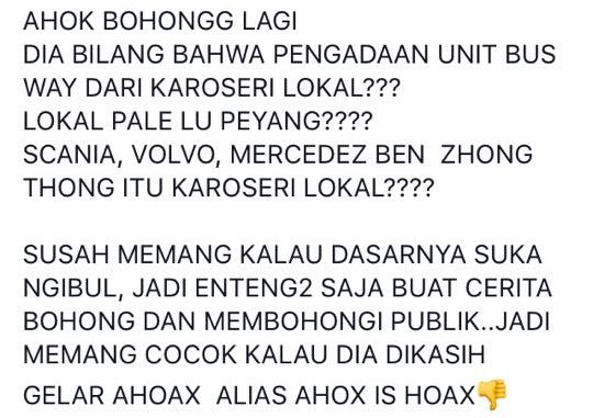 [HOAX] Ahok Bohong tentang Pengadaan Unit Busway dari Karoseri Lokal