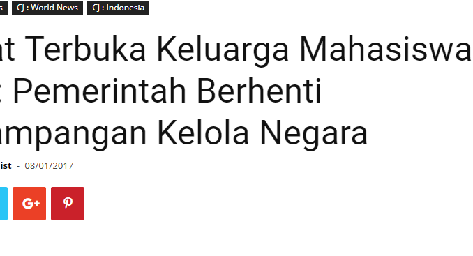 Beredar surat terbuka dengan judul ‘Pemerintah: Berhenti Serampangan Kelola negara!’ mengatasnamakan Keluarga Mahasiswa ITB. Surat tersebut mengkritisi kebijakan Presiden Republik Indonesia Joko Widodo. Ada lima poin yang dikritisi dalam surat terbuka tersebut, yakni mengenai kenaikan bahan bakar minyak (BBM), mengenai pencabutan subsidi listrik 900VA, mengenai masa depan hilirisasi minerbapaska rencana perubahan keempat PP 23/2010, mengenai kenaikan harga STNK, TNBK, dan BPKB, dan terakhir mengenai kerukunan nasional dan konflik horisontal di masyarakat.