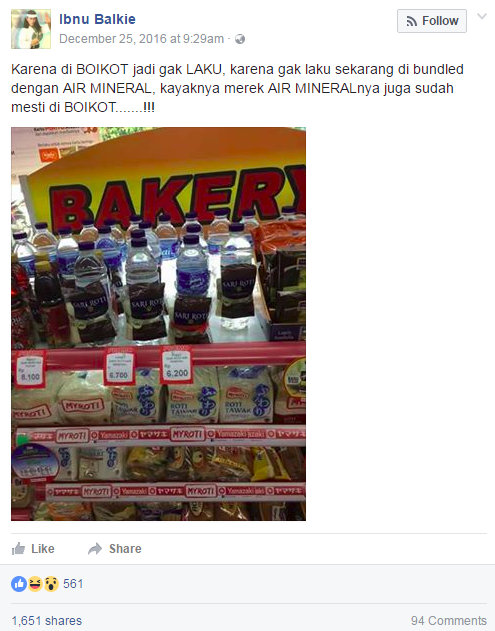 Air Mineral Yang Membundel Sari Roti Juga Mesti Diboikot