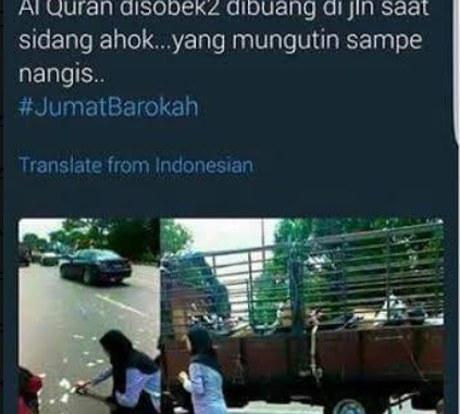 Al Quran disobek2 dibuang di jln saat sidang ahok…yang mungutin sampe nangis..