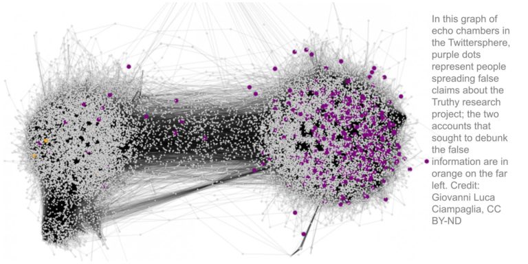Tulisan ini hasil suntingan dan editing dari tulisan Ismail Fahmi, Anggota Forum Anti Fitnah Hasut dan Hoax. Hoax dan berita propaganda untuk tujuan tertentu mudah sekali menyebar melalui sosial media. Dalam sebuah penelitian oleh sebuah tim dari Columbia University tentang penyebaran hoax ke dalam dua cluster yang cukup aktif, dihasilkan pola penyebaran dan polarisasi. Tampak ada dua cluster. Setiap titik adalah user di Twitter. Titik yang berwarna ungu adalah user yang menyebarkan berita hoax. Hal yang menarik ialah ternyata cluster sebelah kanan yang paling banyak penyebaran hoax-nya dibanding cluster kiri....selengkapnya di bagian REFERENSI.