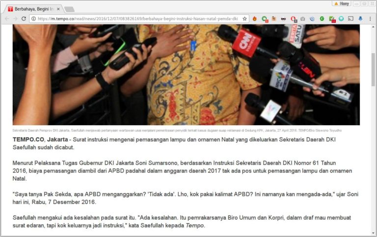 Surat itu dibuat oleh Saefullah, Sekda DKI. Pada Instruksi Sekretaris Daerah DKI Nomor 61 Tahun 2016, dinyatakan pemasangan hiasan natal mendapat anggaran dari APBD, padahal tidak ada budget untuk itu.