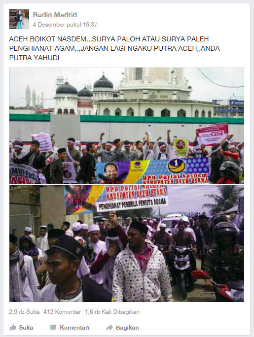 Aceh Boikot Nasdem, Surya Paloh Atau Surya Paleh Penghianat Agam
