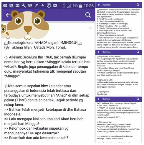 Alkisah; Sebelum thn 1960, tak pernah dijumpai nama hari yg bertuliskan *Minggu* selalu tertulis hari *Ahad*. Begitu juga penanggalan di kalender tempo dulu, masyarakat Indonesia tdk mengenal sebutan *Minggu*.