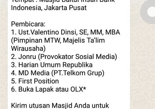 [HOAX] Pelatihan Masjid Cyber Army di Masjid Baitul Ihsan Bank Indonesia