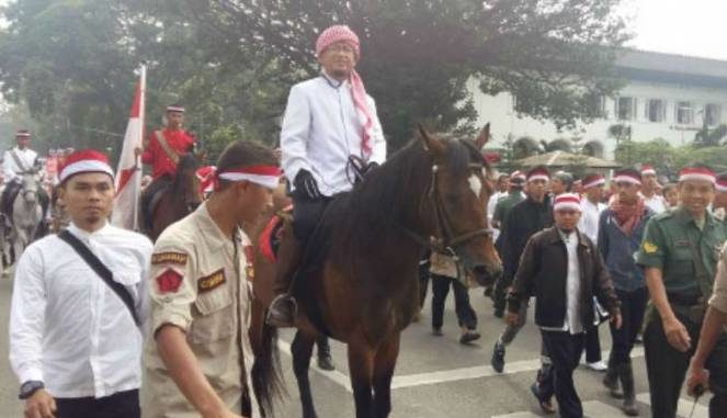 Kehadiran Aa Gym dalam kegiatan bertajuk Indonesia Milikmu, Milikku, Milik Kita Bersama Bhinneka Tunggal Ika itu menarik perhatian peserta apel karena datang menunggangi kuda.