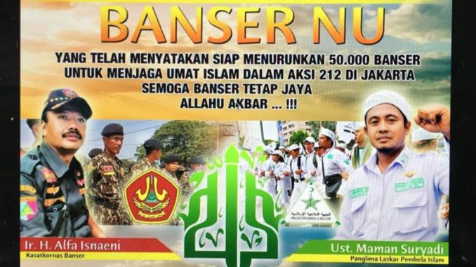 YANG TELAH MENYATAKAN SIAP MENURUNKAN 50.000 BANSER UNTUK MENJAGA UMAT ISLAM DALAM AKSI 212 DI JAKARTA