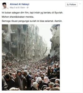 Narasi: Foto disertai dengan narasi yang mengklaim bahwa kejadian dalam foto merupakan kejadian di Suriah. Berikut narasinya: