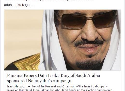 Laporan adanya beberapa pihak dari Arab Saudi diperoleh dari Panama Papers. Namun setelah dilakukan penelusuran lebih lanjut, terdapat indikasi yang menyatakan jika laporan tersebut adalah tidak benar melainkan hoax. Kejanggalan lainnya, adalah bahwa jika berita itu akurat, sangat mustahil media-media utama Israel termasuk media oposisi dan media Barat tidak ikut melansirnya.