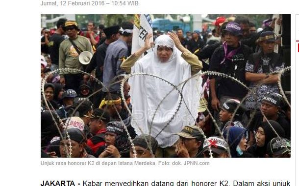 “Mereka itu ada yang meninggal saat pulang ke daerahnya, ada yang meninggal saat perjalanan ke sini (Jakarta),” Ketua Forum Honorer K2 Indonesia, Titi Purwaningsih, Jumat (12/2/2016).