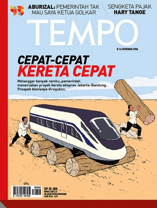 Cover asli majalah tempo, bergambar jokowi yang sedang mendorong kereta dengan tulisan : CEPAT CEPAT, KERETA CEPAT, yang telah dirubah.