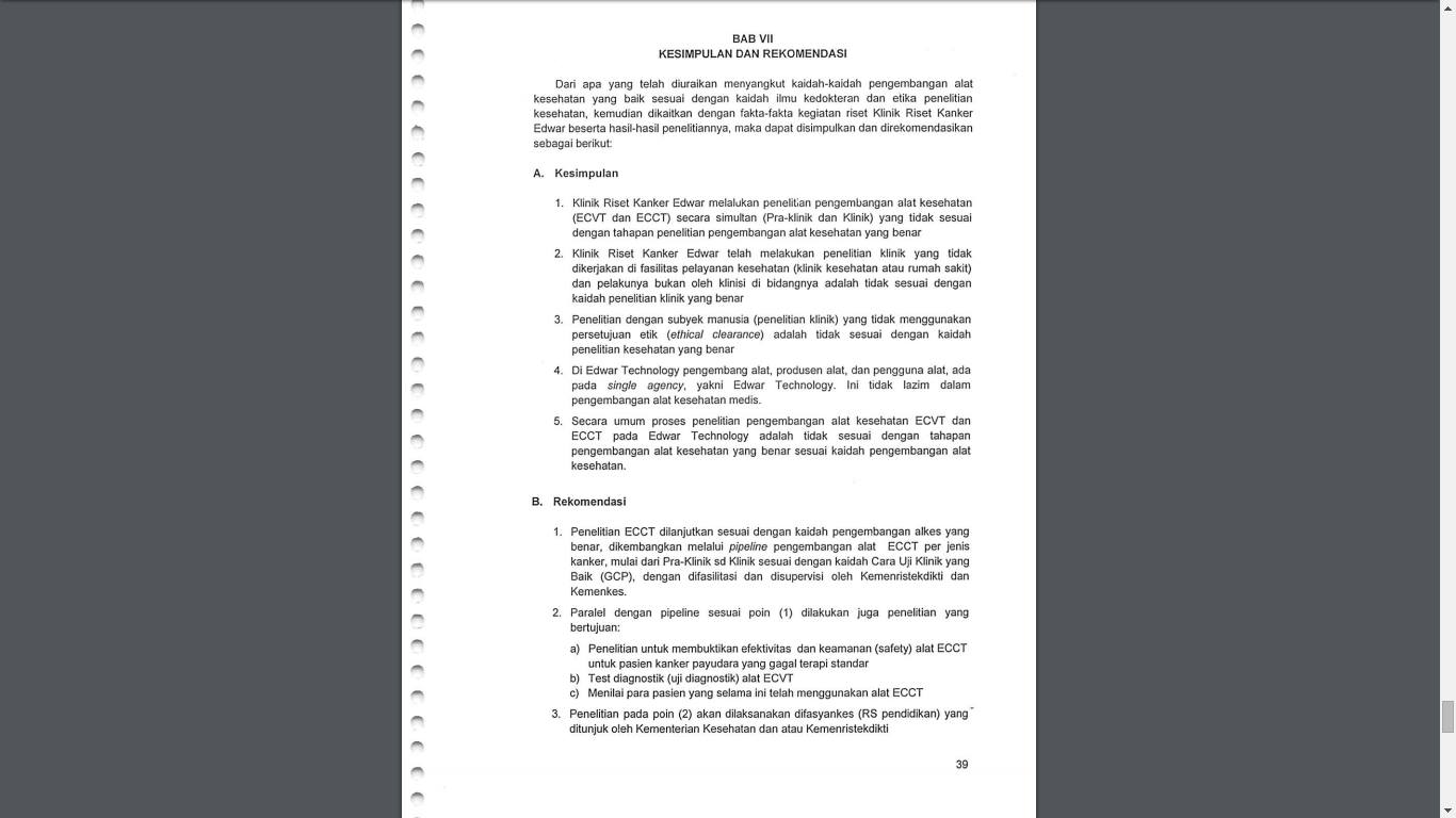 Yang sesungguhnya dilarang oleh pemerintah adalah tentang berdirinya klinik Dr. Warsito. terkait dengan riset, pemerintah mengaku tidak pernah melarang hal tersebut.