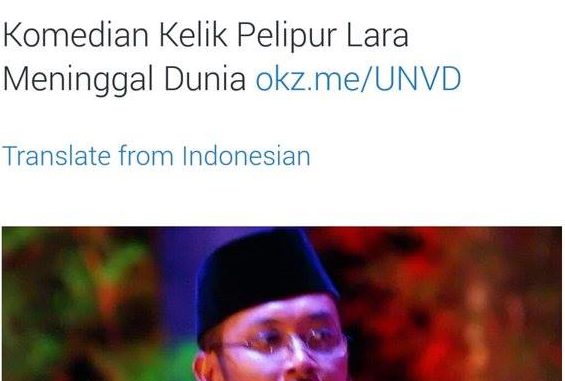 “Indonesia kembali kehilangan salah satu komediannya ..Kelik Pelipur Lara yang meninggal di RS Tangerang, Rabu, 20 Jan 2016, pk. 23.00 #RIP,” tulis anakjalanan @lisaboykecil.